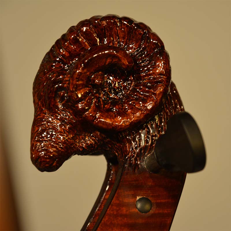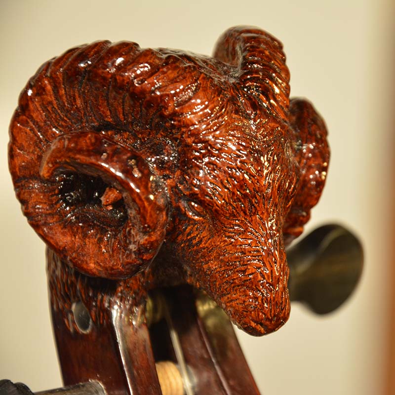 Das Originalinstrument ist Teil der Hill-Sammlung des Asmolean Museums in Oxford und stammt aus dem Jahr 1598. Üppige Dekoration mit u.a. einem geschnitzten Kopf mit Haaren aus Blattgold. Wurde höchstwahrscheinlich als Lyra Viol verwendet.