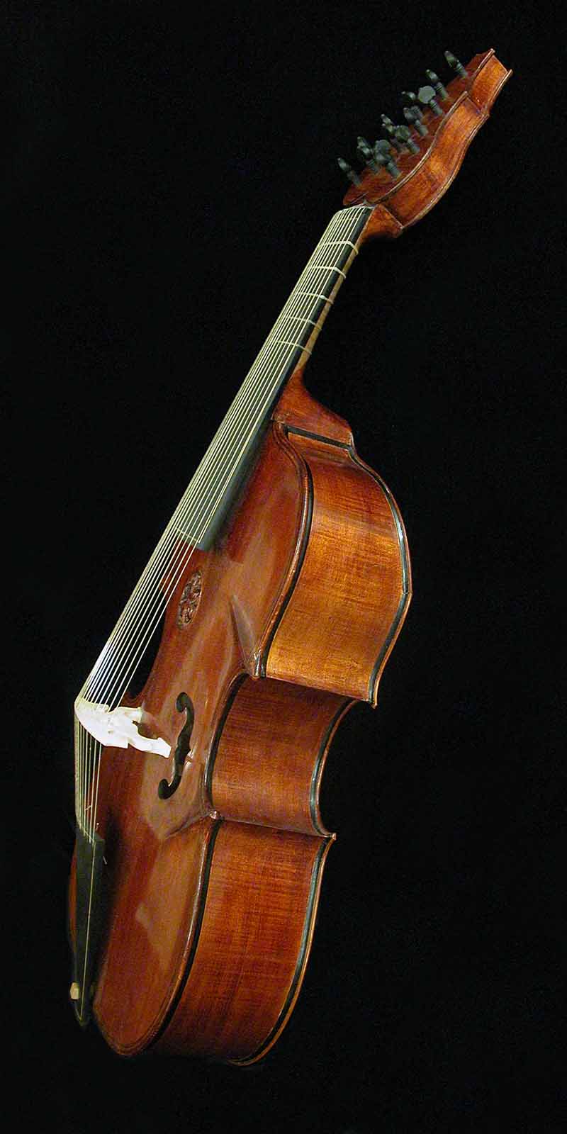 Dieses Instrument hat einen großartigen, tragfähigen Klang. Dennoch bleibt das zarte Timbre, das so typisch für einen Lirone ist, erhalten. Die Wirbelplatte aus dem 19. Jh. wurde durch ein Modell ersetzt, das auf einer Lira da braccio von 1580 gefunden wurde und das wir passender fanden.