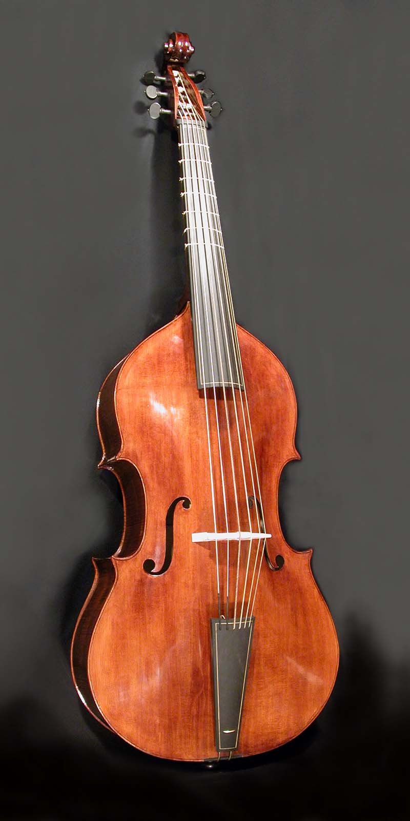Durch Verkleinern des Korpus ist es möglich, das Instrument als großen G-Violone mit einer Mensur von 960 mm zu spielen. Mit den entsprechenden Saiten kann dieses Instrument auch als D-Violone verwendet werden.